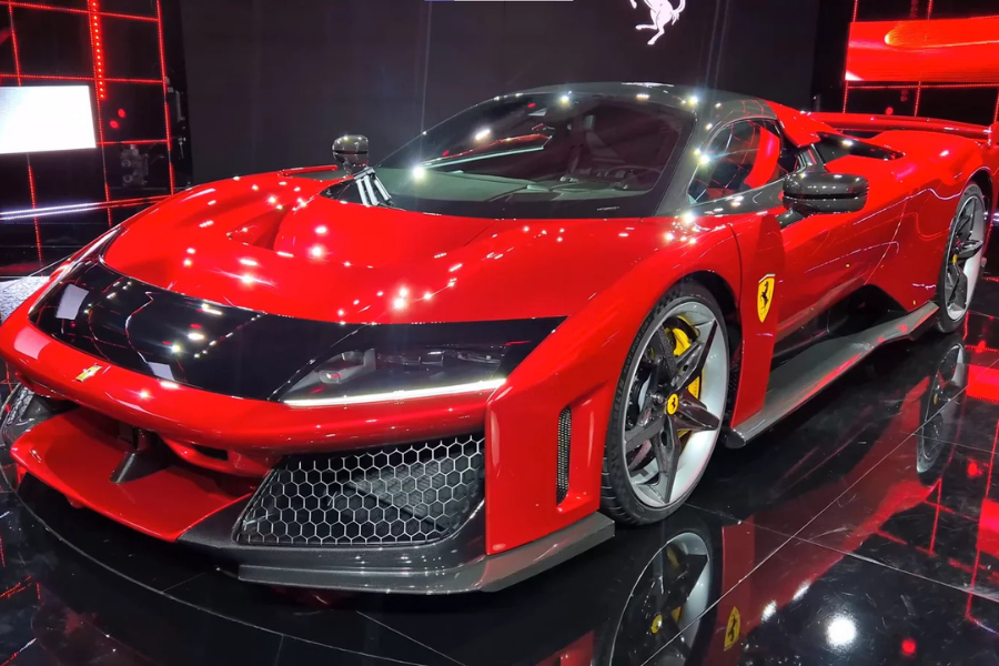 Para chegar nos 1.200 cv da Ferrari F80, a fabricante adotou um trem de força híbrido de seis cilindros e três motores. O que é movido a combustão pode chegar nos 9.200 rpm, gera 888 cv e brutais 86,7 kgfm de torque. Conta com bielas de titânio, tração nas quatro rodas com vetorização de torque no eixo dianteiro.